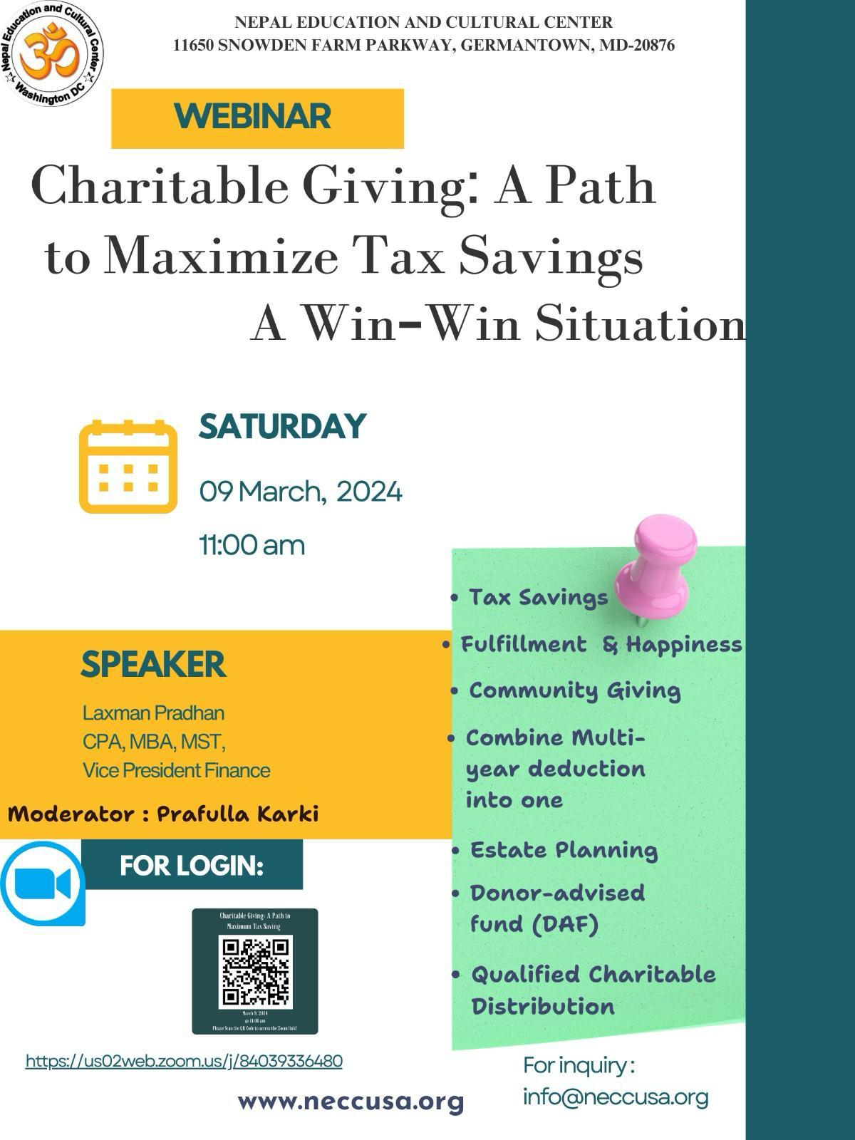 NECC is organizing a webinar on Charitable Giving. This webinar is solely for general information and educational purposes. Community members can maximize tax benefits with proper charitable giving strategies and planning. Our collective effort is to create win-win situations between community members as donors and NECC as a recipient. There are so many tax codes and incentives that are established by the US Congress to encourage charitable donations for community development. Please think about your questions or concerns, which we can discuss during our webinar. Please pass this information to your friends, relatives and family, who is eager to support and [...]